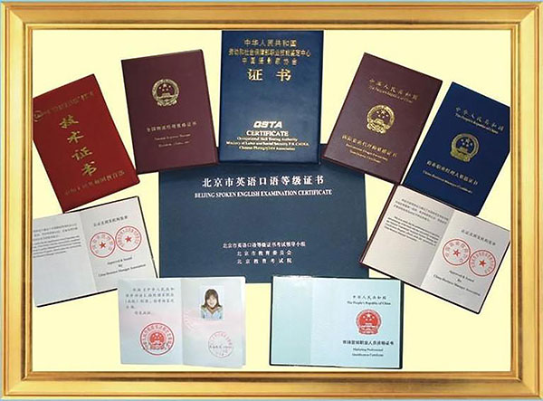 学员可自愿、自费考取公共英语三级证、普通话证、全国计算机等级证、红十字会急救证、礼仪证、茶艺证、酒店管理师证、国际白金管家职业资格证等证书。