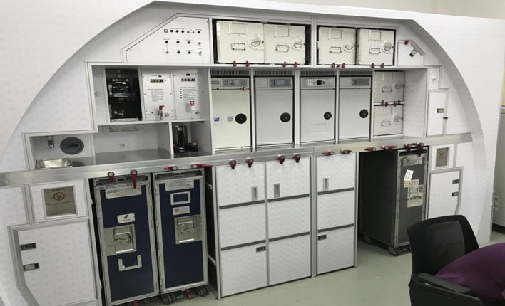 B737-800/A320乘务客舱模拟训练舱:是对乘务人员进行客舱服务,紧急处置和安全意识的地面训练设备。其主要功能包括:客舱服务模拟训练;乘务员控制面扳操作训练;机内广播;内话操作等训练功能;客舱服务紧急处置。