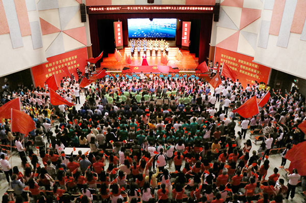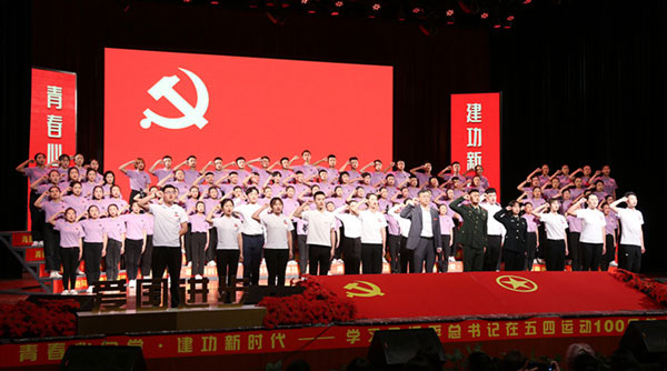 为贯彻落实共青团中央(中青发[2019]7号)文件《共青团中央关于认真学习宣传贯彻习近平总书记在纪念五四运动100周年大会上重要讲话精神的通知》的要求,我校于5月9日晚7时,在星空剧场隆重举行“青春心向党·建功新时代”学习习近平总书记在五四运动100周年大会上的重要讲话精神诗歌朗诵比赛。我校董事长刘学民,校长唐小林,党委书记高华锦等领导出席,各二级学院院长、党总支书记以及千余名师生共襄盛举。