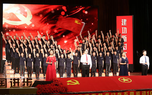 本次活动在《五四记忆》百年纪念片中拉开序幕,全体师生齐唱团歌。