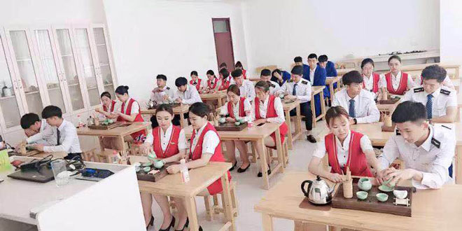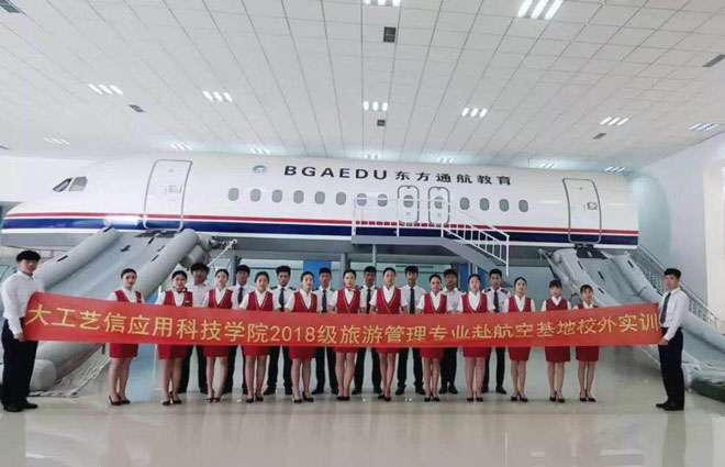 航空专业校外实训基地位于山东烟台,实训分为机舱实训和日常学习两部分。日常学习主要为形体与茶艺课程。机舱课程让学生直接进入模拟机场进行岗位培训,设身处地了解空乘日常工作,按照标准工作流程及要求严格训练,提前熟悉岗位职责。