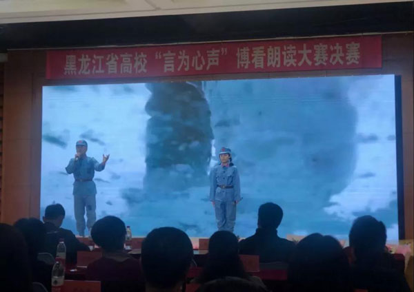 比赛在牡丹江医学院的《腾飞吧·大凉山上的火凤凰》中拉开序幕,在哈尔滨师范大学的《你青青子衿,更悠悠我心》中落下帷幕。黄飞博同学以第二名的顺序开始了比赛,他带来的作品《嘎达梅林》声音低沉有力、铿锵顿挫,情感跌宕起伏,再现了当年蒙古人民坚决反对日本侵略者的意志和追求自由的信念,再现了民族英雄的光辉形象。