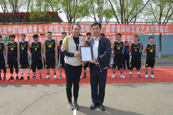 中国国家青年队主教练苗立杰助力哈尔滨广厦学院国际文化艺术节开幕式