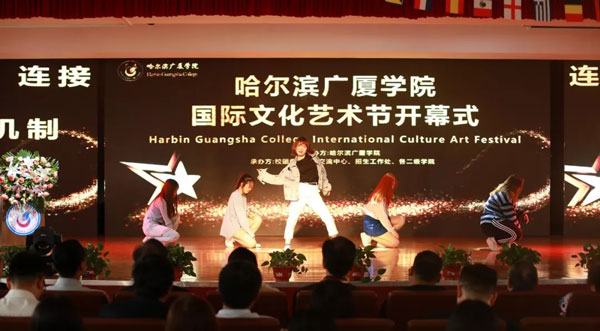 结束对校篮球队的指导后,苗立杰来到图书馆五楼报告厅,参加哈尔滨广厦学院2019年国际文化艺术节开幕式。相关领导、嘉宾及学校师生共计600余人参加了此次开幕式。