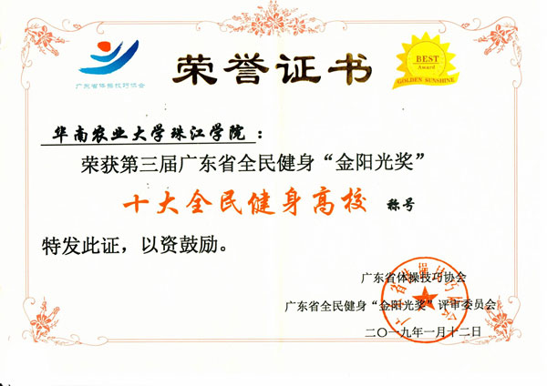 华珠再次荣膺广东省十大全民健身高校