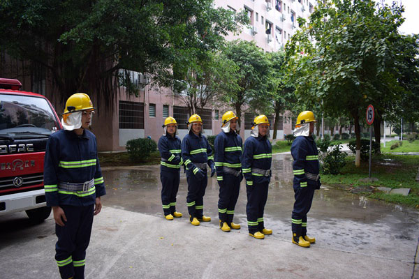此次消防疏散演练还模拟了高楼起火并存在人员被困的火灾现场。火灾发生后,学校消防车迅速赶到,消防站工作人员快速完成施水灭火等营救措施,与现场指挥人员紧密配合,在最短时间内救出伤员。整个过程控制在8分钟左右,参与演练活动的所有师生成功被疏散到安全地点。