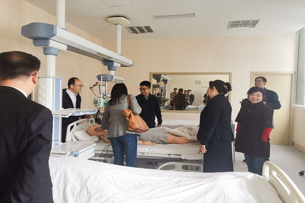 座谈结束后,曹钟勇会长一行还考察参观了图文中心,护理、传媒艺术学院等相关实训设施,对学校高端教学实训条件、优美的校园环境大为赞赏。