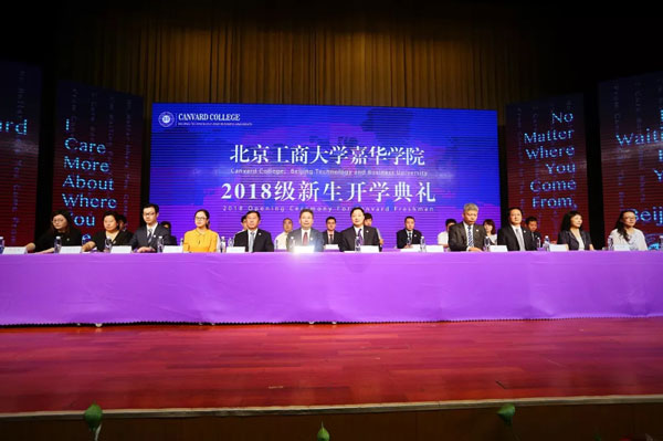 8时20分,随着党委书记张晓磊的郑重宣布,北京工商大学嘉华学院2018级新生开学典礼正式开始。