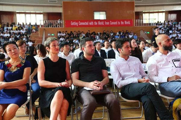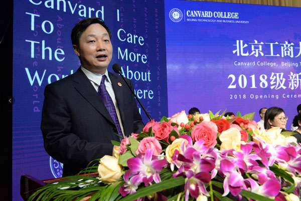 “我由衷感受到‘得天下英才而育之’的快乐。在此,我谨代表北京工商大学嘉华学院全体师生员工、全球嘉华校友,对你们的到来表示最热烈的欢迎!同学们,当你们迈进嘉华学院校门那一刻起,你们的青春和梦想,你们的汗水和泪水,都将刻上嘉华学院的印迹。你们将在这里书写你们新的人生篇章。相信你们的加入,学校因你们而更加精彩,你们也将会在嘉华触及世界,成为最好的自己。国际嘉华已与你牵手,新的人生征程即将起航。青春无畏,也应无怨无悔;学习很累,但奋斗的青春最美。”校长宋国华教授在讲话中向新生提出了三点希望,他希望同学们主动学习、独立思考,增长本领,修身养德,确定目标,全力以赴。