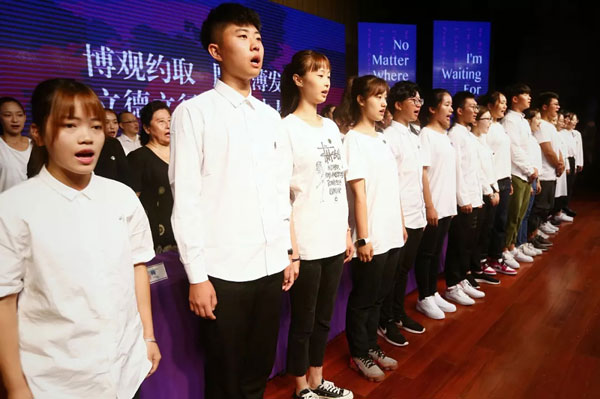 “To be a teacher makes us glory of our whole life!Now everything issettle down, we are looking forward to seeing you touch down!”金融与贸易学院任丁秋副教授代表全体嘉华教师做了全英文发言,她寄语全体嘉华师生,前途是光明的,道路是宽广的,让我们携起手来,精诚团结,共同奋斗,创造嘉华更加美好的明天!