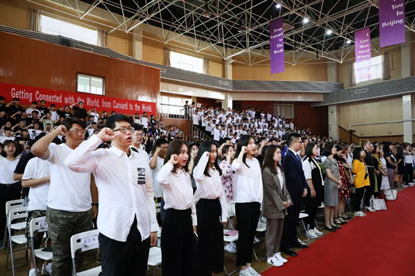 “我要做有理想、有本领、有担当的新时代青年,爱国励志、求真力行,勤学修德、明辨笃实,为实现两个‘一百年’伟大目标而努力奋斗!”2018级新生在国旗下庄严宣誓,全体嘉华师生见证了这一时刻。将开学典礼推向高潮!