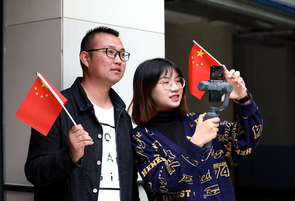 一颗颗红心,表达的是对祖国的热爱;一句句歌唱,吐露的是师生们的真情。“快闪活动非常精彩,特别振奋人心,能生活在这样一个伟大的新时代,真的很幸福,祝福我们的祖国越来越强大!”围观的信息工程学院学生李玉刚告诉记者。