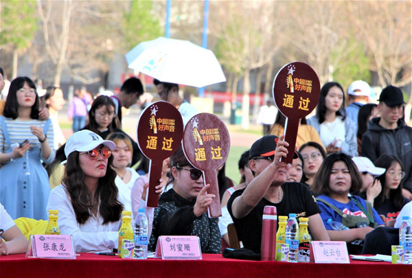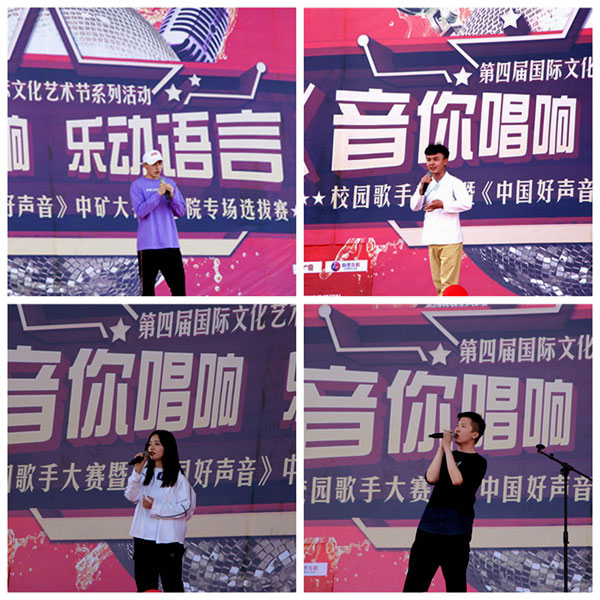 为营造我校国际教育文化氛围,加强高端化、国际化、个性化办学理念,丰富校园文化生活,4月17日下午,由国际教育学院、经济与管理学院联合全国知名音乐评说节目《中国好声音》宁夏组委会举办的学校第四届国际文化艺术节系列活动之“音你唱响 乐动语言”校园歌手大赛初赛暨《中国好声音》中矿大银川学院海选专场选拔赛在学校运动场隆重举行。国家一级演员、宁夏著名女高音歌唱家赵云台、宁夏演出行业协会常务副会长、宁夏音协流行音乐学会秘书长孙继东、《中国好声音》宁夏赛区组委会会长、宁夏华宇星空文化传媒有限公司董事长刘蜜珊为海选评委出席。同时到场的嘉宾有招商银行银川兴庆府支行行长张涛、学校国际教育学院院长张康龙、宣传部副部长张弘德、经济与管理学院党总支书记、副院长杨欣欣及各学院团总支书记、老师、学生近一千人共同观看本场比赛。