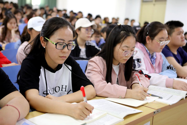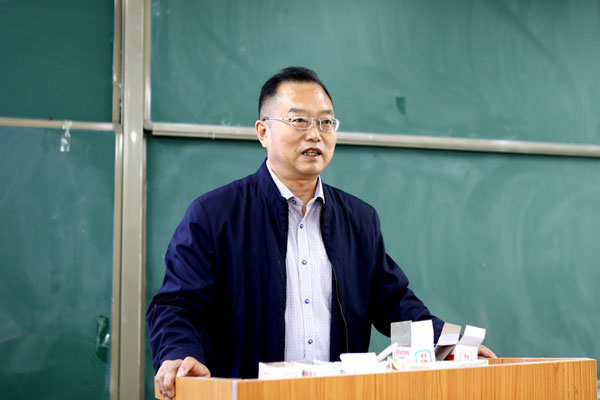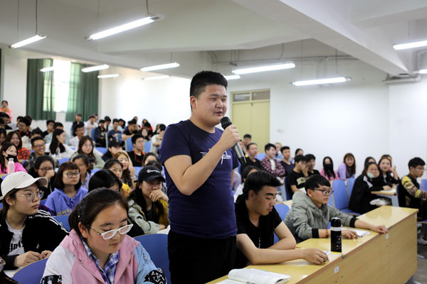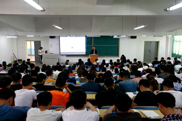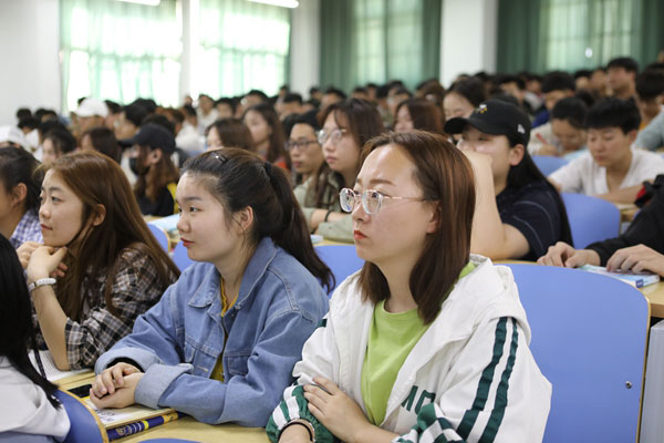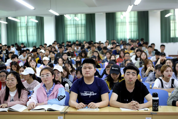 4月18日下午,学校党委书记郭书印在A5阶一北教室为2017级近300名学生讲授以“高等教育改革发展趋势”为主题的专题讲座,帮助同学们了解本科教育的战略地位、改革发展的趋势和具体举措。