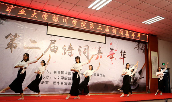 比赛首先进行的是诗词知识抢答,选手们思维敏捷、沉着应对,以充沛的表现力和深厚的诗词功底为现场观众带来了一场精彩绝伦的诗词盛宴。活动过半,人文学院团总支学生会文体部的姑娘们给大家带来了一段优美的舞蹈《不染》,活跃了现场气氛。飞花令环节,充分展现了参赛选手们的诗词功底,惊艳现场,掌声不断!