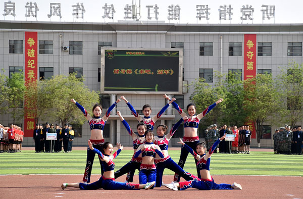 4月26日上午,我校组织8名学生赴吴忠市利通区参加中国人民解放军77156部队第二届“铁拳杯”军事体育运动会开幕式,为部队全体官兵送去精彩的啦啦操节目表演。