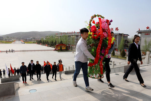 党委书记郭书印、党委副书记王亮与51名党员代表向红军长征将台堡会师纪念碑敬献花篮,向革命先烈三鞠躬,并瞻仰了纪念碑。在红军长征会师纪念碑前,党委委员刘雄飞同志领誓,在场全体党员面向党旗,庄严肃立,重温了入党誓词。活动结束后,参加主题党日活动的党员代表参观了红军长征会师纪念园。在三军会师纪念馆,大家透过一张张珍贵的历史照片和一件件印满岁月痕迹的历史文物,聆听红军动人事迹,感悟红军长征胜利会师的伟大壮举,感受革命先烈为争取自由和解放舍生忘死的崇高情怀,抚今追昔,感慨万千。