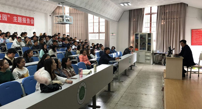 为贯彻落实习近平新时代中国特色社会主义思想和十九大报告精神,充分发挥工匠精神在社会主义核心价值观教育中的资源优势和引领示范作用,12月6日,工匠精神进校园主题报告在就业创业基地一楼报告厅举行,昆明贵研催化剂有限责任公司总经理冯丰先生以《求学、求职、求材》为题作报告。就业指导与服务中心、学院就业联络员及160余名学生聆听了报告,就业指导与服务中心副主任胡万波主持会议。