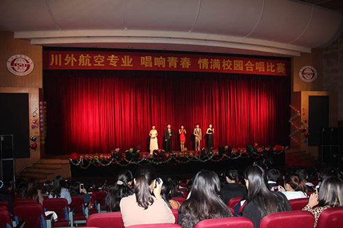 上周由我校航空服务项目主办的“唱响青春,情满校园”合唱比赛在会场隆重举行。青春的旋律张扬着个性,同学们整齐有力的合唱震撼着评委们的心灵。