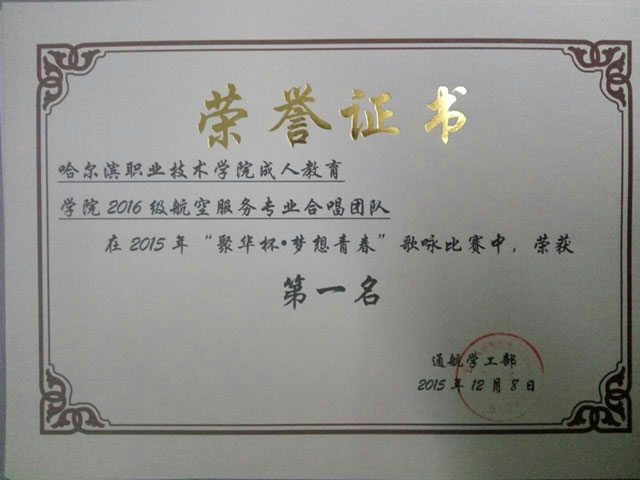 哈尔滨职业技术学院成人教育学院航空服务专业学生 在2015年“聚华杯•梦想青春”合唱歌咏比赛中喜获佳绩
