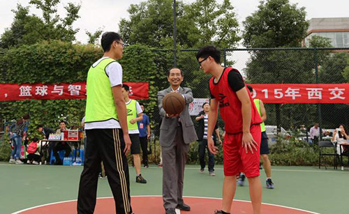 2015年10月8日下午,西安交通大学第四届“苏研超级杯”新生篮球赛暨篮球嘉年华在文荟广场篮球场隆重开幕。苏州教学科研基地党工委常务副书记、苏州研究院常务副院长吴军华、研究生院(苏州)副院长周荣莲、研究院院长助理李季老师、学业导师、辅导员和新生篮球运动员等出席本次开幕式。