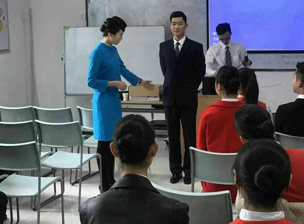 2017年4月5日下午,厦门航空乘务长及人事要员来我校进行招聘宣讲会以及空乘初试。