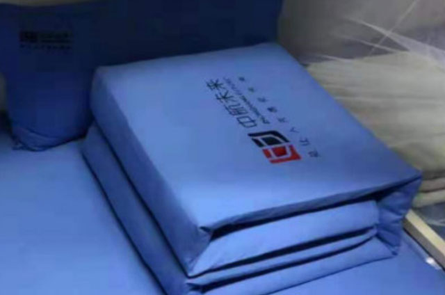 军被:军被摆放统一靠阳台一侧中央位置,字面朝上,光滑一面朝外,枕头摆放在被子与墙面的空隙处,枕头上面的字体朝外;