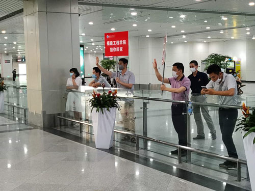 该日,继续教育学院党员志愿服务队一行6人,协同校学生工作部工作人员等奔赴福州长乐国际机场,组织做好学生返校接站工作。党员志愿者们以高度的负责态度和志愿精神,认真做好迎接学生返校复学的每个细致环节,包括:站口相迎、引导帮助、信息核对、温度检测、候车组织、答疑释惑、送车到点、校内对接等,均一一实施到位,让每一位返校学子均体会到不一样的“福建工程学院接你回家”的温暖和感动。